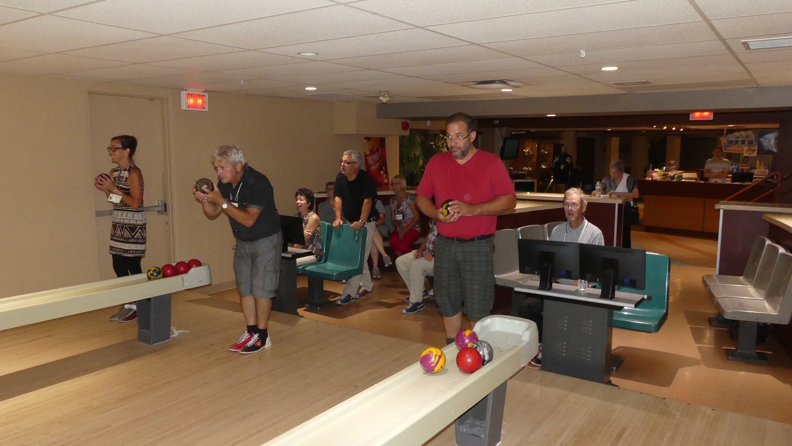 Hélas, après le dîner on annonçait encore 80% de probabilité de pluie à St-Séverin et un tournoi de quilles fut proposé comme alternative où nous avons pu apprécié les talents des joueurs d’expérience et les efforts des débutants. Des téméraires se sont rendus à St-Séverin où il a fait un soleil radieux leur permettant à leur retour de nous dire que les quilleurs avaient manqué quelque chose ; d’autres spontanément sont allés cueillir des bleuets. Les Saindon sont débrouillards…